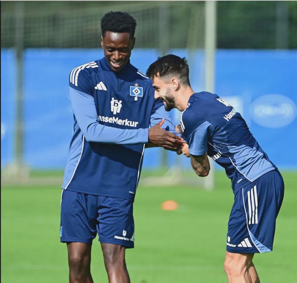 洛孔加和维埃拉在汉堡参加训练。