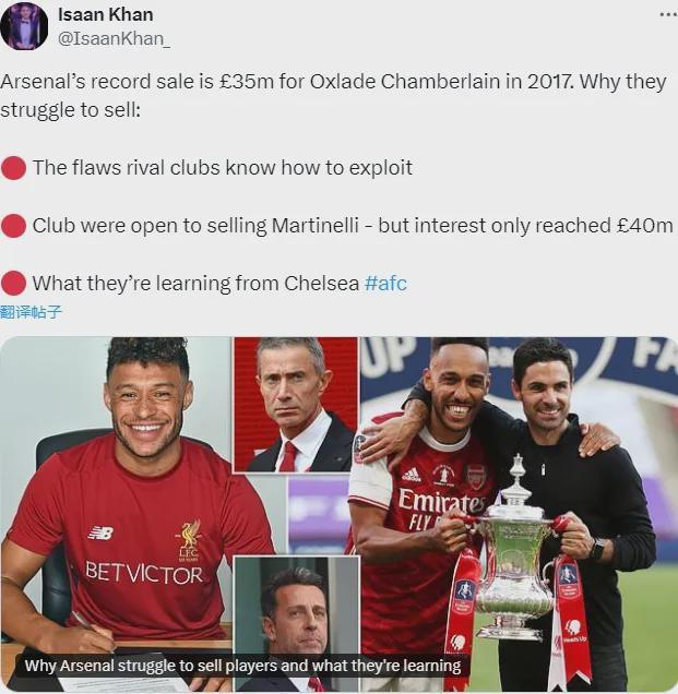 另外,我觉得阿森纳球员卖不上价格,还有一个原因是卖出的球员往往在新东家表现也不好,所以希望离队的球员好好发挥,一炮打响!