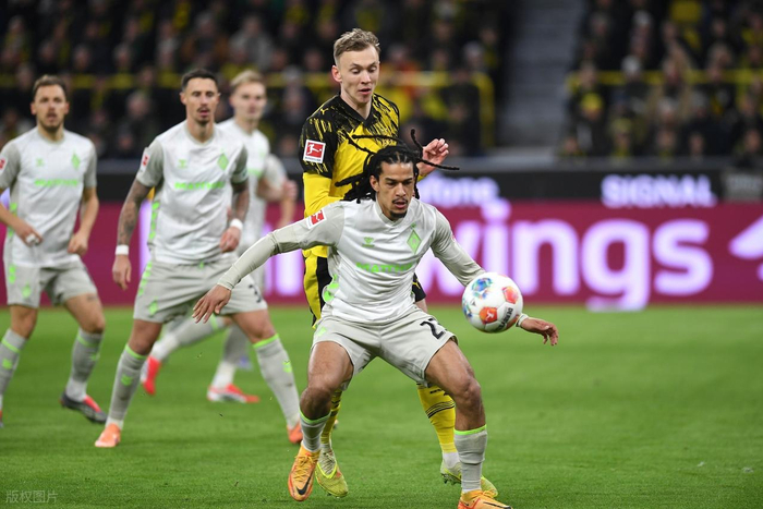多特上轮在客场和法兰克福展开进球大战,最后时刻压哨绝平法兰克福,今天回到伊杜纳信号公园球场对阵弱旅不来梅,多特快速调整过来找回赢球感觉。开场后不来梅差点反客为主率先进球,第5分钟,多特后场传球失误,金马禁区弧顶处断球获得半单刀良机,只是他人球分过捅的力度大了,门将科贝尔及时将球扑住化解险情。第10分钟,多特左侧角球机会,雷尔森操刀主罚兜传门前,施洛特贝克小禁区内抢点回头望月甩头攻门,皮球应声入网,多特1:0取得不错的开局。